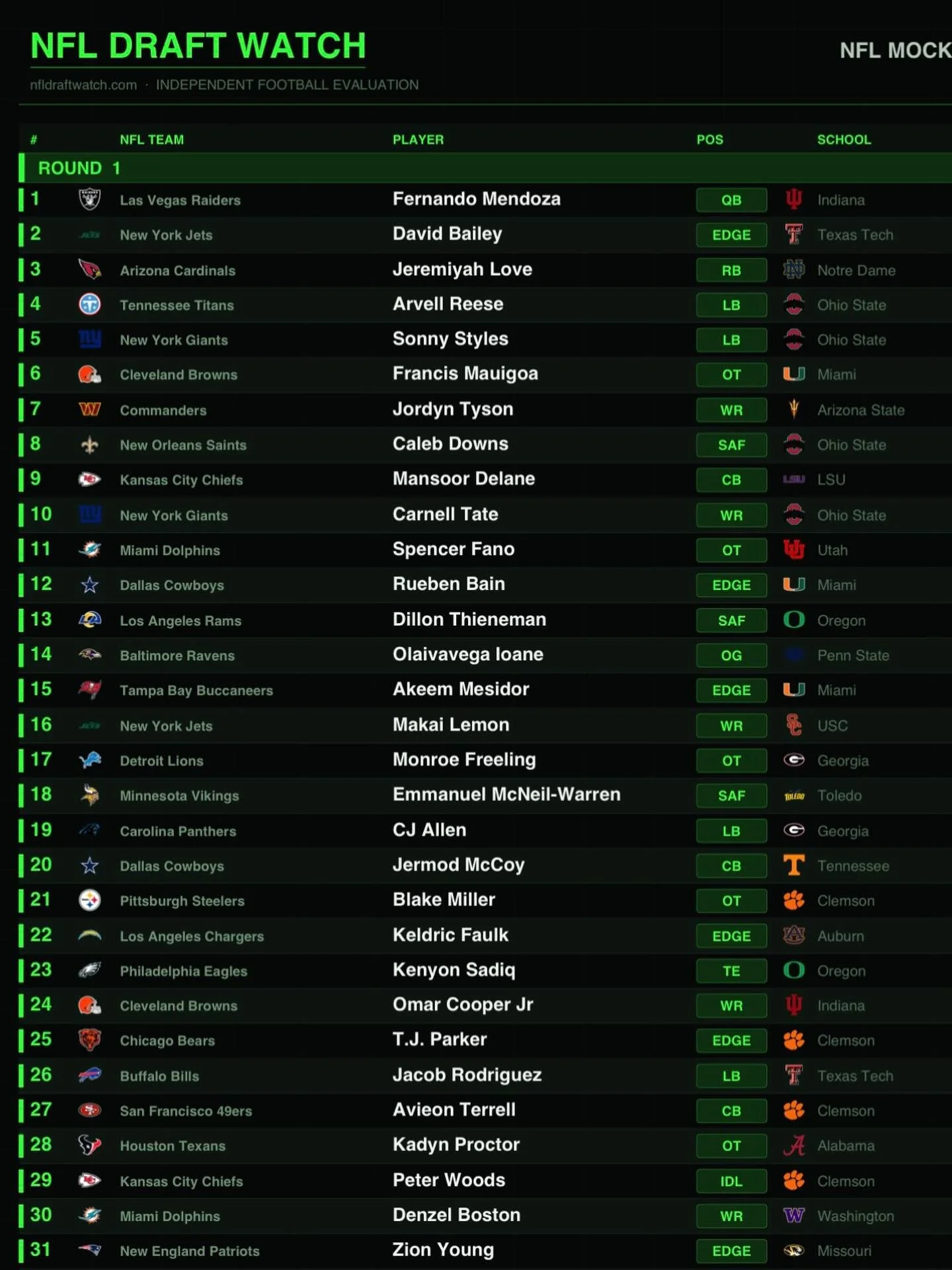 Our Star Preview identifies top first-round prospects who are highly likely to make an immediate impact in the NFL. These players possess the rare combination of elite athleticism, refined skills, and football intelligence, making them strong candidates for first-year starters. With the ability to adapt quickly to the professional level, they are expected to contribute from day one and become foundational pieces for their respective teams. These athletes represent the best of the draft class, with the potential to significantly elevate their teams' performance in their rookie seasons.